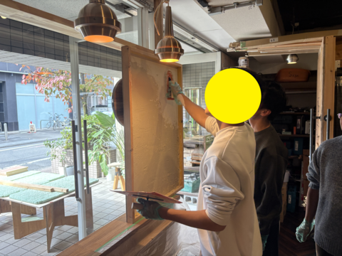 1つ残念だったのは、一枚の板に交代で塗るという点。